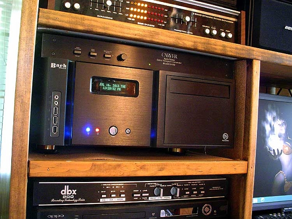 The digital heart of the system is a Bach Media HTPC running Windows 8 and jRiver Media Center. It's also set up to dual boot to Windows XP for vinyl rips, as it's just a lot easier to do it that way than upgrade and reinstall all the software needed for that. Recently gutted and updated to a current generation board and chipset which runs absolutely quiet and cool, unlike the old system that could cook eggs on a hot August day, even with six fans running.