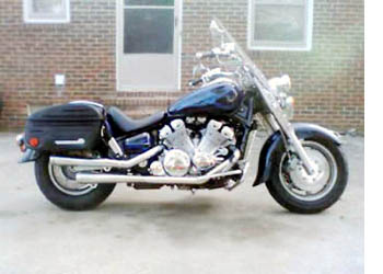 Vance Herring (NatureBoy) says this is a " '97 royal star standard that has been converted to a Tour Classic. It has a Planet Cruiser radiator cover, braided cables, PCS potato chip seat, Pro-1 kit that consists of v-max cams, springs, etc., and has a custom paint job by Britt Motorports in Wilmington, NC. These are just a few of the accessories that have been added. This bike has hit 95 mph in second gear." Formerly Terry Malpass's scoot.