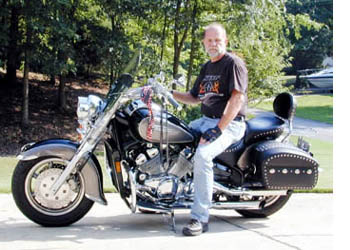 Dan Harris (RoyalStarDan of Alabama) says: "Silver Back is a '97 Royal Star Tour Classic, black on gray, with Cobra pipes, Bigfoot all the way, D3K, Yammy Corbin seat, newly installed short windscreen and passing lights. This bike is one of those orphan bikes sold on E-bay, but love was at first sight. I knew I had to have this one even if no one else bid on her. I bought at bottom bid and was proud to to give here a home she needed, even if I had to fly from Alabama to Las Vegas and ride her home in mid December!! Had 12.4k on the speedo and now has 24k on it, trying my best to catch Glenn, but that is a long way off."