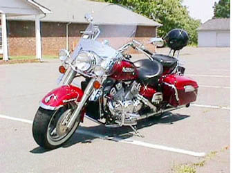 Ed Fitzgerald says: "Bike is '99 model RSTD. Khromewerks pipes, Baron's tach, clock & temp gage by Formotion, Bigfoot, V-max diff, chrome fins and other goodies." Think I'll have my Royal painted red...