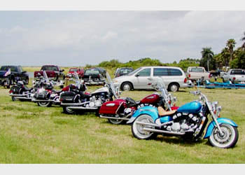 J. D. Johnson sends this picture from Holiday Park in Florida: "From right to left we have: Dennis's (RealViking) custom solo Royal with Pro-1 Kit; Dennis's better half MaryAnn's '96/'99 Standard/TourDeluxe; my '96 Standard dressed as a TC; Rich's red TC II Silverado; and last but not least we have Lenny's TC."