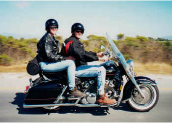 Mike King (StarHubby) says, "Here are me and the Mrs. on US 1 South, heading to Monterey from the SF Bay area. Lisa's first ride was on our first date. Took the lady to Half Moon Bay and been with her ever since. Asked her to marry me a year later. After riding shotgun for a year she now solos on a Roadie but still calls the Royal the 'Cadillac.' This is a '97 RSTD with the FULL Monty, Barnet clutch, Bigfoot, D3K, Venture cams, and Vmax springs and rear differential."