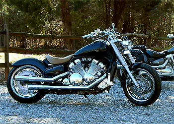 I stripped the bike down to the frame, started buying items that were made for customs Harley's, and started cutting, welding and grinding to make everything work. I made my own lowering bracket, which dropped the rear 2-1/2", put an 180-55/18 out back and a 130/70-18 up front - Metzeler's of course. Stainless cables, the last set of billet Pro-One forward controls with the last pair of matching grips, Bubs 4x4 pipes, K&N individual air filter pods, Adjure flamed bucket headlight, custom turn signals on front & rear, custom flamed stitched seat with an inlaid black iron cross, and so on and on.